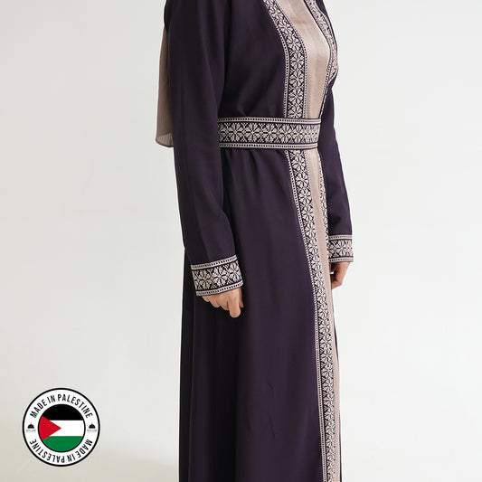 Palestinian Open Tatreez Abaya (Purple and Gold)